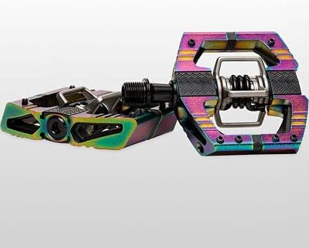 エンデューロレースやライド向けに設計された限定版ペダルです。このモデルは、独特なオイルスリックカラーが特徴で、視覚的なインパクトを与えます。